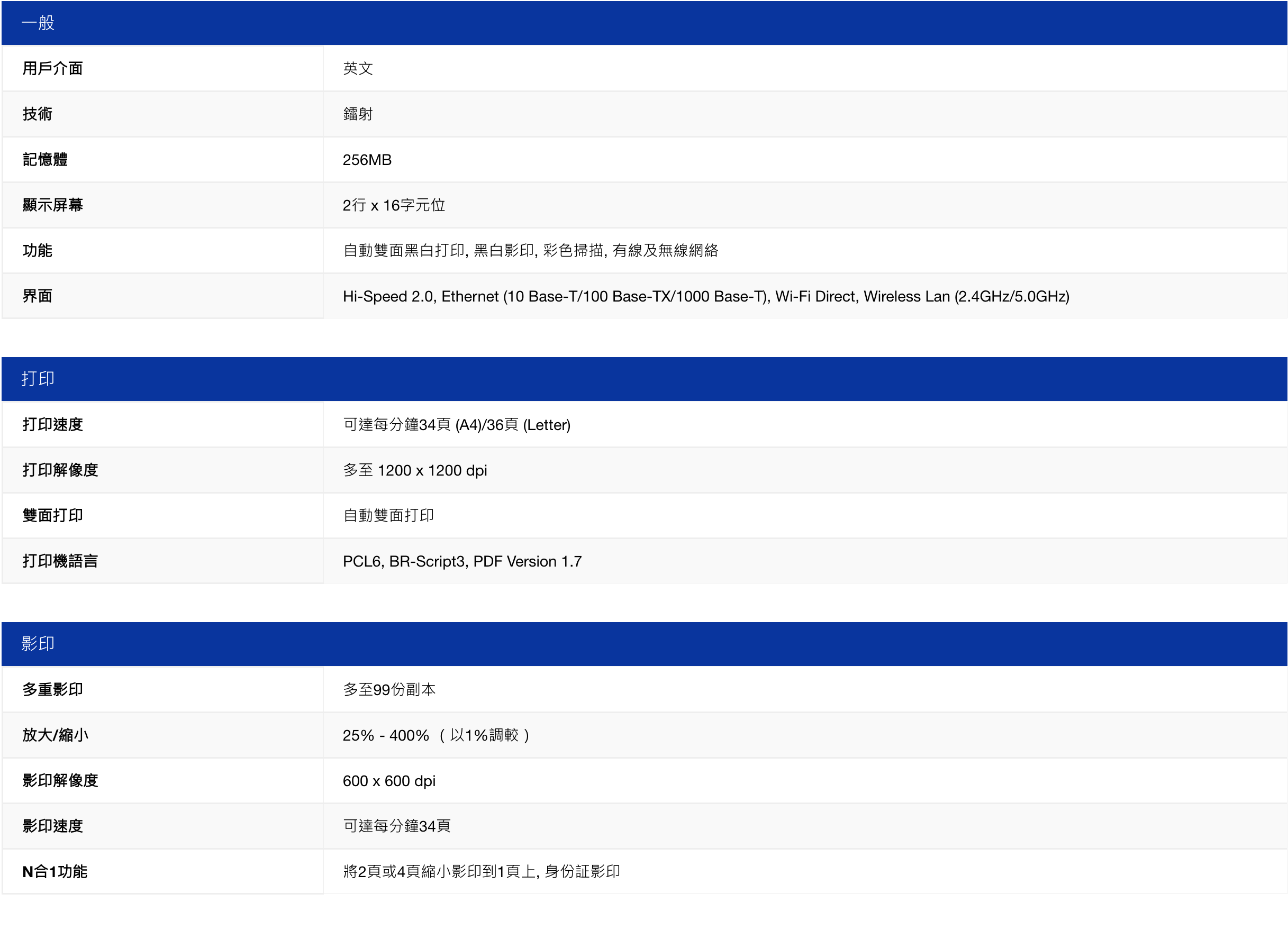 -黑白打印/彩色掃描/黑白影印/有線/無線網絡/WiFi