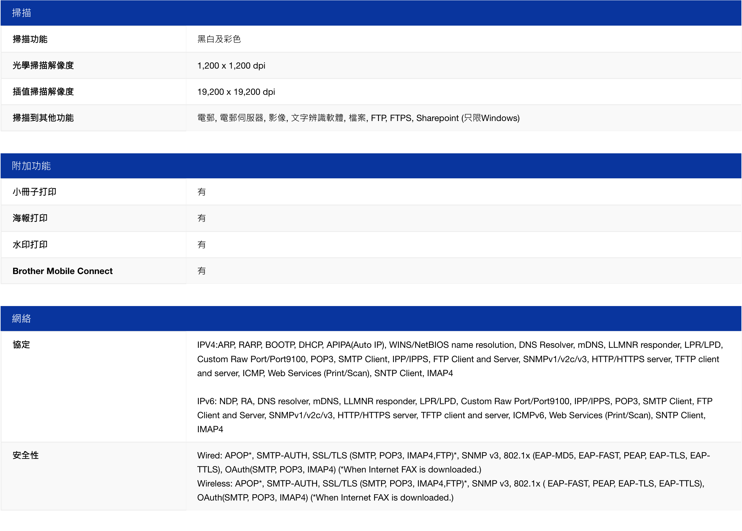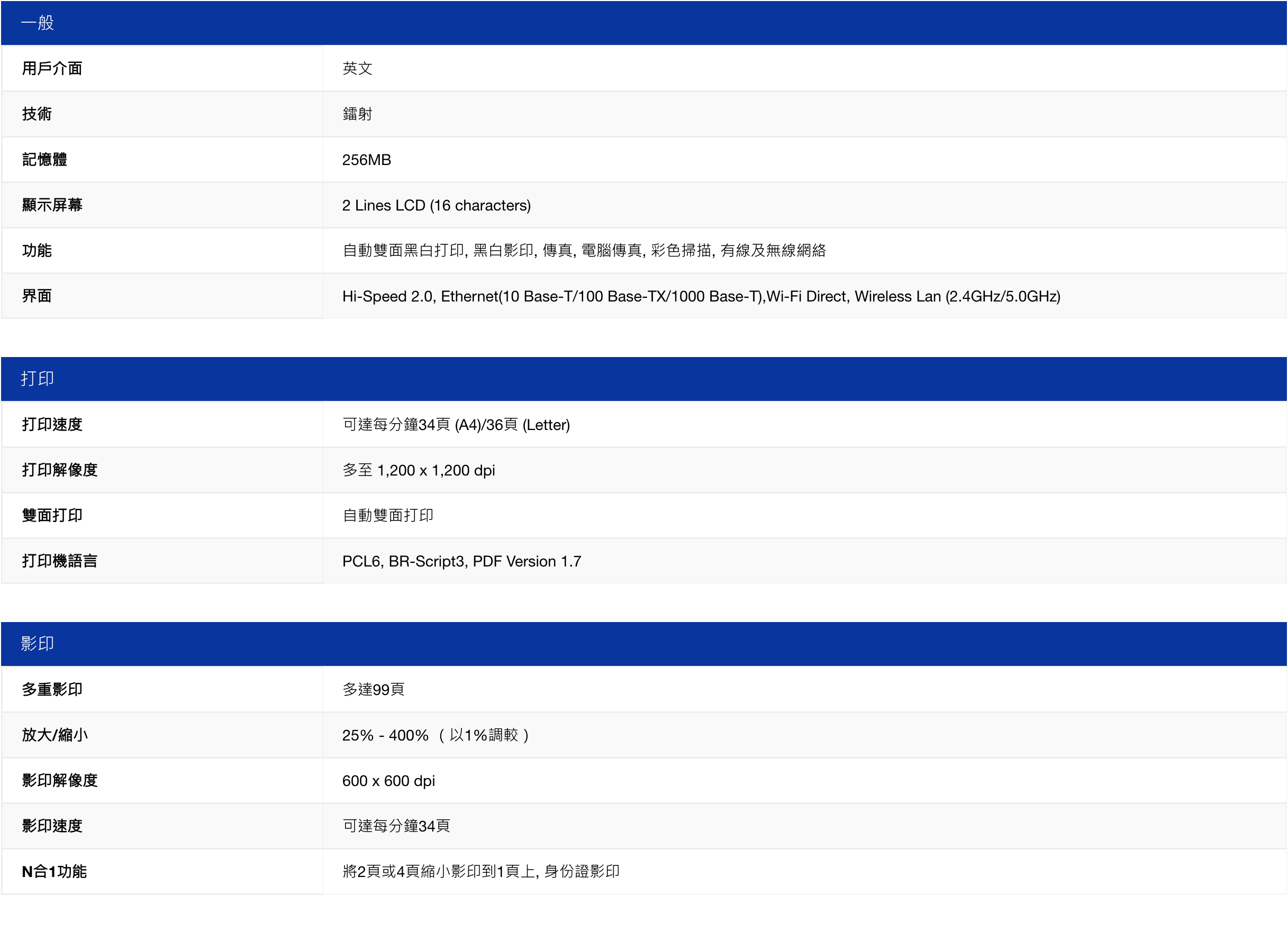 -黑白打印/掃描/影印/傳真/ 有線/無線網絡/WiFi