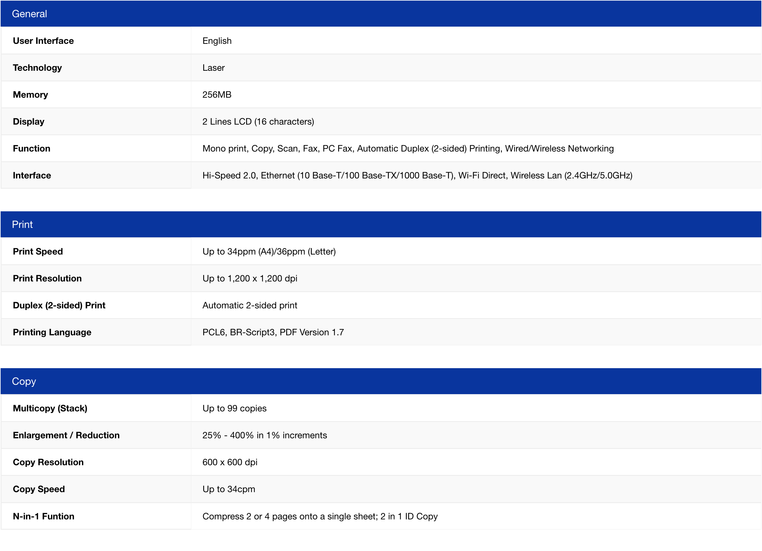 -Mono Print/Scan/Copy/Fax/ Network/WiFi
