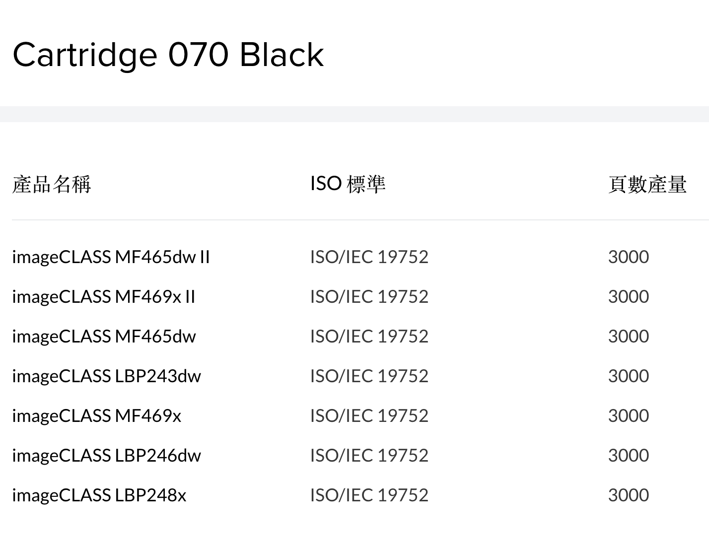 Cartridge 070 黑色碳粉盒
